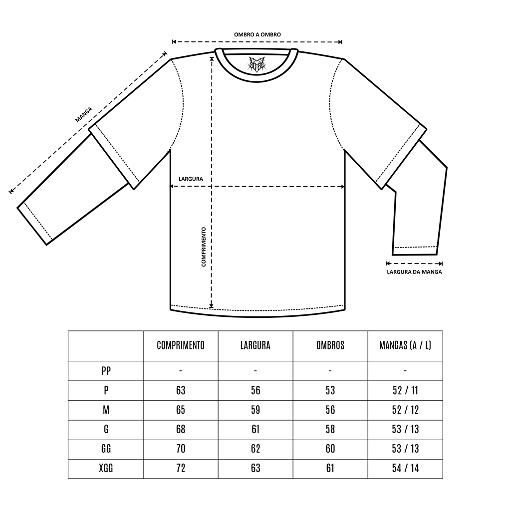 Camiseta preta com estampa localizada na frente e nas costas e manga longa embutida